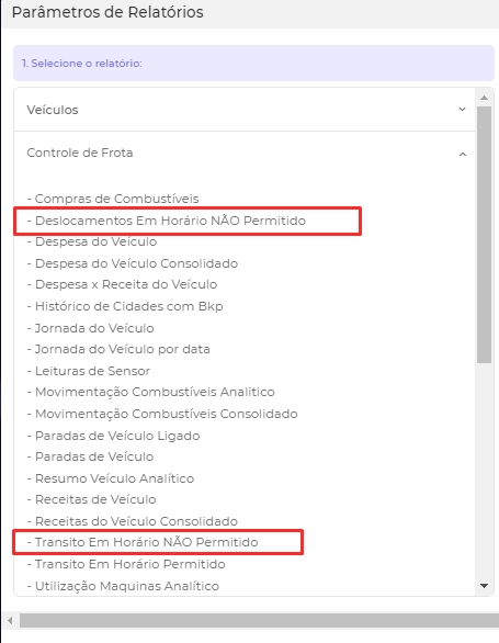 Para cadastrar os horários permitidos para o veículo circular, é necessário ir em configuração, alteração veículo ou alteração veículo em lote.